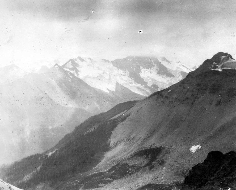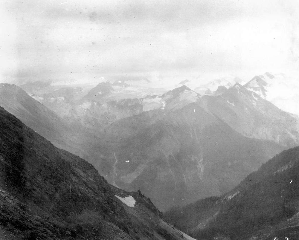 BC Dept of Mines, “Panorama of icefield, south side of No. 3 from summit above “Lead Queen”,” 1915, I-62675, BC Archives.