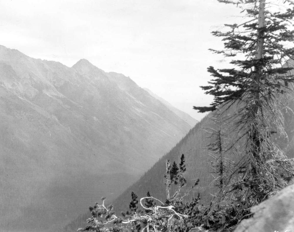 Unfortunately, unlike the Steele and Lead Queen groups, the exact location of the Evelyn and Second Effort claims of the McLean group has not survived. The two were surveyed and given a crown grant, but this grant seems to have reverted back to the crown and the location of the surveyed lots has been lost. The claim is later described as being on a steep hogsback near the summit of the steep mountain to the west of McLean Creek.13 It’s unknown if the tunnel still exists. There are two photos from 1915 taken from the vicinity of the claims, and in the records of the BC Department of Mines (see below).