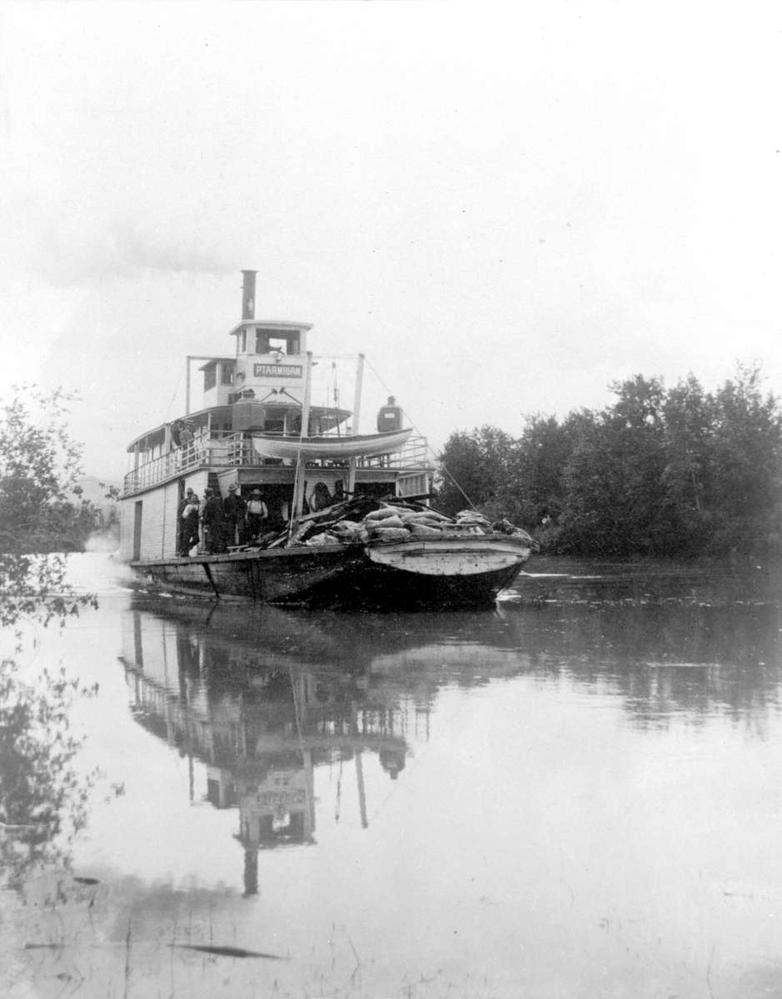 The Ptarmigan, launched in 1903, re-used the engines and boilers previously in use by the Duchess. “The SS Ptarmigan on the Columbia River,” 1905, HP024984, BC Archives.