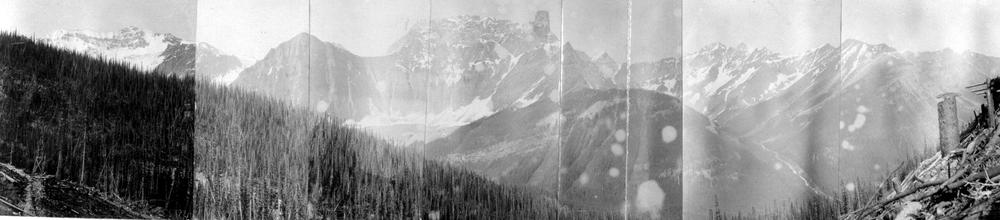 The view from the Ptarmigan Mine office in 1903. British Columbia. Bureau of Mines. “View from office of Ptarmigan mine near Wilmer,” 1903, I-56270, BC Archives.