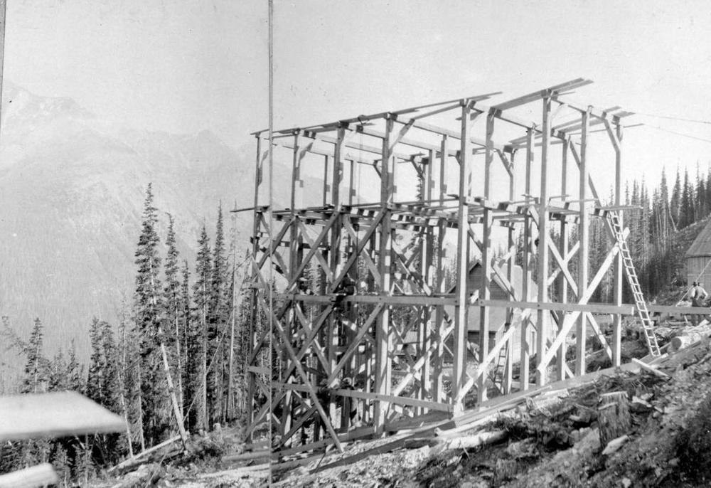 Construction at the Ptarmigan Mine in 1903. British Columbia, Bureau of Mines, “Ptarmigan,” 1903, I-56272, BC Archives.