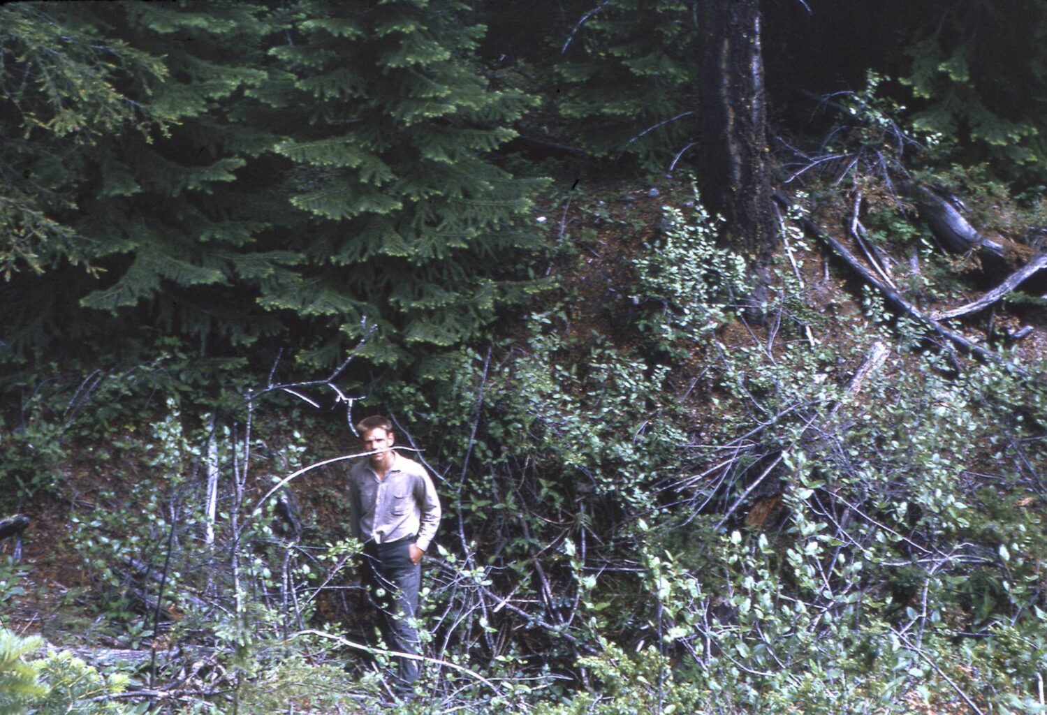 The spring/summer of 1948 saw a large amount of prospecting work done up the Windermere Creek valley by Columbia Gypsum. The gypsum deposits weren’t obvious at first glance. The hillside up Windermere Creek was heavily covered with glacial till and limestone, never mind the trees and other vegetation. Natural outcroppings of rock were rare, meaning that gypsum tended not to be directly visible.