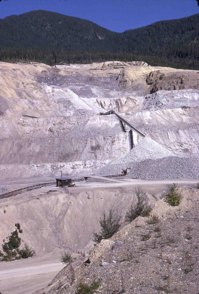 - The name of the operator of the mine changes from BPB Canada to CertainTeed in the 2006 and 2007 provincial reports. British Columbia Mines and Mineral Exploration: Overview 2005, British Columbia, Ministry of Energy, Mines, and Petroleum Resources, 4-5, https://cmscontent.nrs.gov.bc.ca/geoscience/PublicationCatalogue/InformationCircular/BCGS_IC2006-01.pdf; David Grieve, “Kootenay Region,” In Exploration and Mining in British Columbia 2007, British Columbia, Ministry of Energy, Mines, and Petroleum Resources – Mining and Minerals Division, January 2008, 79, https://cmscontent.nrs.gov.bc.ca/geoscience/publicationcatalogue/GeologyExplorationMining/BCGS_EXP2007.pdf ↩︎